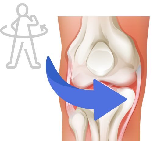 膝が押されるだけでなく、同時にすねの骨が外にねじれると、さらに靱帯に負荷がかかりやすくなります。