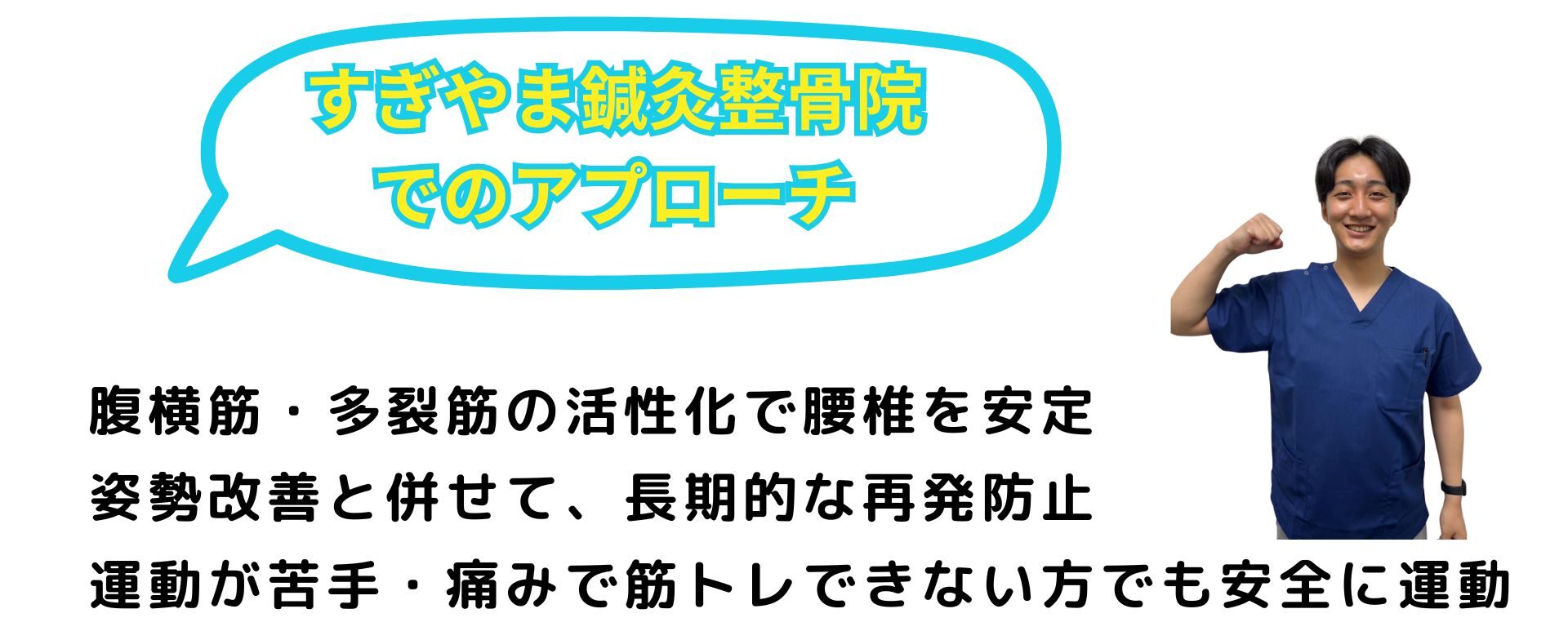 すぎやま鍼灸整骨院では、最新のEMS機器を用いてインナーマッスルを効率的に強化します。運動が苦手な方でも簡単にできるプログラムもご用意しております。